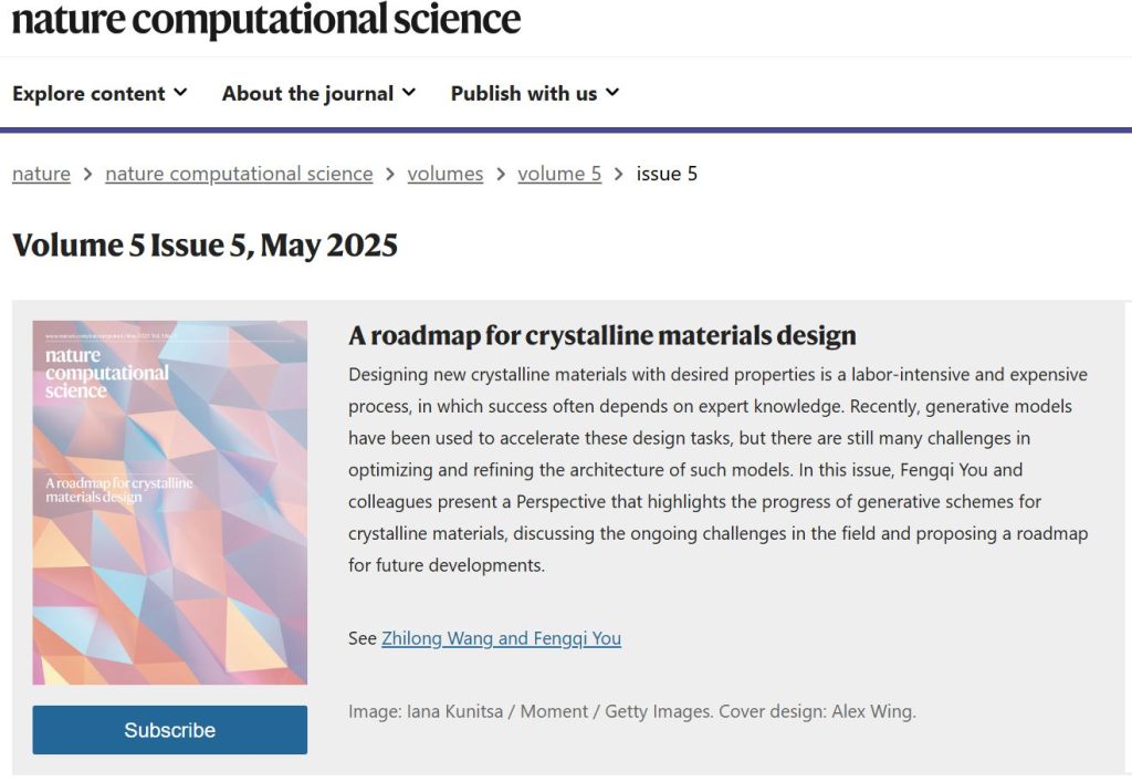 In a Nature Computational Science paper published May 9 and selected to feature on the Cover of May 2025 Issue of the journal, You and Zhilong Wang, an Eric and Wendy Schmidt AI in Science Postdoctoral Fellow, introduce a new framework for generative inverse design of crystalline materials. Crystals, with their repeating atomic patterns and strict symmetry, present a challenge for AI models, which often rely on abstract or oversimplified representations.